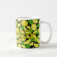 Zitronenslicen und Blätter. Nahtloses Muster. Benutzerdefinierte Hintergrundfarbe. Benutzerdefinierter Text auf beiden Seiten.
