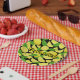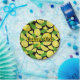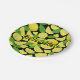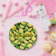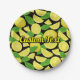 Zitronenslicen und Blätter. Nahtloses Muster. Benutzerdefinierte Hintergrundfarbe. Eigener Text.