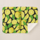 Zitronenslicen und Blätter. Nahtloses Muster. Benutzerdefinierte Hintergrundfarbe. Eigener Text.