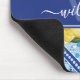 Stilvolle Zitronen und mediterrane blaue Fliesen Mit Monogramm Mousepad. Einzigartige und trendige Aquarelllemonen, grüne Blätter auf blauem Kachelhintergrund mit einer eigenen monogrammalen Vorlage und eleganter Kalligraphie-Schriftzeichen-Vorlage. Dieses hübsche, grüne, gelbe, blaue und weiße Botanische Mauskissen würde Mama, Tochter, Oma, etc. zu einem nachdenklichen Geschenk machen.