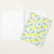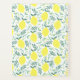 Lemon botanisches Muster mit einer Sammlung von hellen kanarengelben Zitronen, fallender Compound Heuschrecken Blätter, Samentöpfe und Sprossen in patina grün, blau-grün und grünlich. Set auf Weiß.