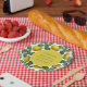 Für ein Brautparty zum Thema Zitrone. Rund um den gelben Kreis gibt es Zitronen, grüne Zitronen-Blätter und ein paar kleine weiße Zitronen-Blume. Der Text im gelben Kreis ist grün. Es enthält den Namen, den Anlass und das Datum. Der Name ist in einem eleganten kalligrafischen Skript geschrieben. Die Zitronenbäume stammen aus alten botanischen Illustrationen von Antonio Targioni Tozzetti (1785-1856), jetzt im öffentlichen Bereich.