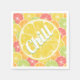 Das Wort Chill auf Papierservietten enthält eine große Zitronenscheibe über einer Collage aus Zitronen, Limetten, Orangen und Grapefruitscheiben. Eine lustige Ergänzung zu Ihrer sommerlichen Wohngestaltung, Party oder als Geschenk.