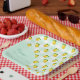 Summer pattern of citrus lemons with mint green gingham