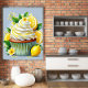 Lemon Cupcake Canvas Wall Art , Vibrant Dessert Illustration Kitchen Decor