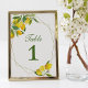 Diese zweiseitige Tischnummer zeichnet sich durch ein Aquarelllachsmotiv aus, das durch einen geometrischen Rahmen und eine lebendige grüne Schrift hervorgehoben wird. Ein wunderschönes Design für Ihre Zitronenveranstaltung. Hergestellt aus robustem Karton, so kann es auf einem Ständer oder in einem Rahmen verwendet werden.