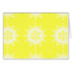 Diese weiße Mandala sitzt auf einem gelben, Zitronenuntergrund. Die Farben sind friedlich und fröhlich. Teil der Sammlung Fenten Mandala.
