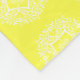 Diese weiße Mandala sitzt auf einem gelben, Zitronenuntergrund. Die Farben sind friedlich und fröhlich. Teil der Sammlung Jarn Mandala.