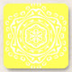 Diese weiße Mandala sitzt auf einem gelben, Zitronenuntergrund. Die Farben sind friedlich und fröhlich. Teil der Pympbys Mandala Kollektion.