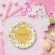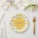 Teller mit einem Schnitt, halber und voller Zitronenmuster. Ein anpassbarer Text ist in der Mitte auf einem gelben Hintergrund verfügbar. Eine frische Dekoration für eine Geburtstagsfeier, eine Hochzeit, ein Party, eine Pension, einen Junggeselinnen-Abschied, etc.