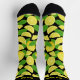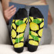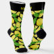 Zitronen und Blätter. Nahtloses Muster. Benutzerdefinierte Hintergrundfarbe. Benutzerdefinierte Farbe des oberen Streifens. Benutzerdefinierter Text auf jeder Socke.