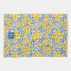 Gold and blue lemon block print seamless pattern gives a rustic farmhouse French country artisan feel women will love.