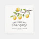 Rustikales Zitrusmotiv Brautparty Papierserviette mit Aquarellbildern von Zitronen auf einem Baumzweig. Im Text steht: "Sie hat ihren Hauptpresse gefunden!" Ideal für ein Brautparty oder einen Polterabend im Sommer.