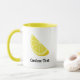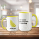 Zitronensaft. Benutzerdefinierte Hintergrundfarbe. Benutzerdefinierter Text auf beiden Seiten.