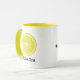 Runder Zitronenanteil. Benutzerdefinierte Hintergrundfarbe. Benutzerdefinierter Text auf beiden Seiten.