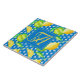 Fügen Sie die Initialen der Braut und der Bräuche (kleine Buchstaben) und ihren gemeinsamen verheirateten Vornamen (großer Buchstabe) hinzu, um ein stilvolles Monogramm-Geschenk für das frisch verheiratete Paar zu erstellen. Die atemberaubende gelbe und grüne Zitronenbaumstruktur vor einem wunderschönen gemusterten Hintergrund in Ozeanblau und Weiß.