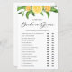 Rate mal, wer es gesagt hat! War es die Braut oder der Bräutigam? | Fügen Sie diese lustige und spielerische Brautparty Er sagte, sie sagte Spielkarte zu Ihrer Veranstaltung. Diese anpassbare Bride oder Groom Spielkarte bietet Aquarellbilder von Zitronen und Orangen mit Akzenten im Grünen. Personalisieren Sie diese, indem Sie Ihre Fragen hinzufügen. Dieses Zitrusfrüchte-Brautparty mit Spielkarte ist ideal für Brautpartys und Polterabende im Sommer.