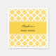 Papierservietten aus Brautparty in Gelb und Weiß. Lemon gelbe Quarrefolienmuster auf weißem Hintergrund.