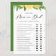 Raten Sie mal, wer? Mo oder Papa? Fügen Sie diese lustige und festliche Babydusche Er sagte, She Said Spielkarte zu Ihrer Veranstaltung. Es verfügt über eine Aquarellgarage mit Zitronen, Orangen und Grünpflanzen mit einem skurrilen Schriftzeichen. Personalisieren Sie diese, indem Sie Texte auf der Rückseite der Karte hinzufügen. Dieses Mama- oder Papa-Spiel ist perfekt geeignet für Sommerduschen und Babysprinklen.