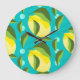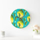 Lemons Polka Dot: Blue Background. Große Wanduhr