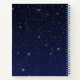 Spiralheft mit dem Symbol für Leo in weichem silberblauem Blau, überlagert mit den Sternen der Sterne, vor einem Sternenhimmel Hintergrund gestuft von tief Mitternacht blau bis schwarz.