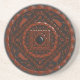 Dieses Leo-thematische Mandala zeigt einen Onyx-Stein, umgeben von dem Symbol für das Zeichen, die Konstellation, und das alchemistische Symbol für Feuer unter rötlichen Kupferfiligranen und gravierten Webern.
