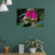 Ein fotografisches Moments Design mit zwei Leoparden-Blume-Set vor einem üppigen tropischen grünen Hintergrund in diesem einzigartigen Leopard-Blume-Design, perfekt für jede Gelegenheit.