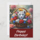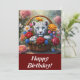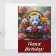 Illustration d'un bébé léopard blanc dans un panier de fleurs présenté sur une carte de voeux plat de 5 x 7 pouces