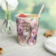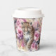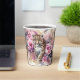Das Bild zeigt eine wunderschön detaillierte Abbildung eines jungen Leoparden, umgeben von einer Vielzahl von dynamischen, blühenden Blume. Der Leopard mit seinem gepunkteten Fell und den ausdrucksvollen Augen ist in der Mitte sichtbar und bildet einen auffallenden Brennpunkt. Die umliegenden Blume, vorwiegend in Rosa und lila, fügen der Komposition eine weiche, skurrile Touch hinzu. Der Hintergrund ist in Gold- und Pastellfarben gehalten, was das Gesamtbild des Bildes in Traum und Kunst verstärkt. Diese faszinierende Mischung aus Wildnis und Blumenelementen macht das Bild optisch ansprechend und einzigartig, perfekt für Produkte, die ein Gefühl von Eleganz und natürlicher Schönheit hervorrufen.