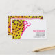 Un carte de visite de cosmetologist/salon comportant une conception orange de léopard sur l'avant et le dos. L'avant comporte l'illustration des ciseaux roses. Personnalisez l'avant avec votre information de contact d'affaires. Employez de nouveau à écrivent l'information de rendez-vous.