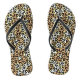 Schwarze Flip Flops mit einem wilden Tiermuster, die perfekt sind, um Ihr Outfit für jeden Anlass zu verkleiden.