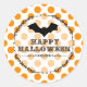 Halloween-Aufkleber mit Fledermaus, Scrollrahmen und Leopardenprint Happy Halloween.