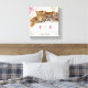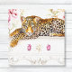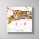 Richtig farbige Aquarellfarben-Leinwand einer Leopardenkatze, die auf einem weißen Dressing mit rosa Edelsteinknöpfen, gerahmt durch sanfte Rose Blütenakzente, sitzt. Ideal für Mädchenzimmer, Bäder oder Salons - ideal für Katzenliebhaber und alle, die eine Mischung aus wilder Schönheit und feminininem Charme gewollt haben.