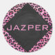 Leopard-Monogramm, Schwarz und Heiß-Rosa Runder Aufkleber