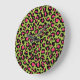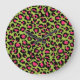 Leopard Muster in Raspberry auf Lime Green Große Wanduhr
