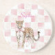 Leopard Pink Bow Squares Getränkeuntersetzer