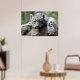 Mit einem atemberaubenden Blick auf einen kleinen weißen Leopard, der Sie von einem Felsen draußen anschaut.Dies ist ein wunderschönes Foto auf diesem Poster