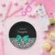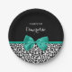 Personalisieren Sie es, indem Sie den Namen eines Girly Girl zu diesen trendigen Tellern in Schwarz-Weiß-Leoparden drucken, mit einem gürtelgrünen Band, das in einem niedlichen Bogen befestigt ist. Dieses stilvolle Tierdesign ist ein flaches gedrucktes Bild und enthält kein echtes Band.