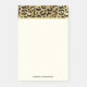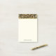 Sticky Noten mit einem stilvollen Muster. Der obere Rand ist mit exotischen schwarzen Leoparden-Flecken auf einem goldenen Hintergrund gestaltet. Wilder und dennoch eleganter Stil. Ein dünner Imitat goldener Folienstreifen unterhalb des Musters. Schreibfläche ist eine weiche Creme. Personalisieren mit einem Namen.