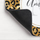Ein Mauspad mit einem stilvollen Muster. Exotische schwarze Leoparden auf einem goldenen Hintergrund. Wilder und dennoch eleganter Stil. Ein weißer Rechteckrahmen mit einem Imitat mit Goldfolie, der oben mit dem personalisierten Namen und dem Monogramm-Initial überlagert ist.