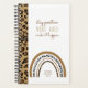 Bleibe Positive Arbeit Hard Make it Pappen, personalisierter Planer mit Regenbogenleopard Printdesign. Einfach, mädchenhaft und trendig mit modernem Zitat in handgeschriebener Typografie - perfekt für Schule, Büro und Multitasking-Mommas!