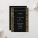 This wedding invitation is shown in a classic layout with a fresh look of a lovely black and gold metallic glitter leopard print design.