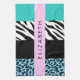 Leopard Print, Zebra Print, Blau, Ihr Name Geschirrtuch