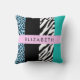 Leopard Print, Zebra Print, Blau, Ihr Name Kissen