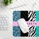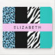 Leopard Print, Zebra Print, Blau, Ihr Name Mousepad