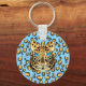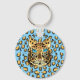 Whimsical Leopard mit Leopard Print Background Schlüsselanhänger! Personalisierbar! Ändern Sie die Hintergrundfarbe!