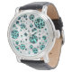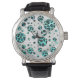 Leopard Schwarz und Aquamarin Armbanduhr