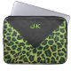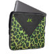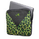 Leopard Schwarz und Grün mit Monogramm Laptopschutzhülle