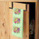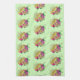 Ein Gecko aus Leopard liegt zwischen Blume und Henna vor einem grünen Hintergrund