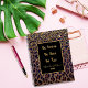 Elegant, cool, glamourös und feminin mit braunem, goldfarbenem und schwarzem Leopardenmuster, mit goldenen Konfetti dekoriert. Personalisieren Sie Ihren Namen und fügen Sie ihn hinzu. Vorlage für ein Jahr, gelbe Buchstaben. Ein schwarzer Rahmen mit dem motivierend Zitat: Seien Sie mutig, seien Sie mutig. Ideal für Unternehmerinnen, Make-up Künstler, Ladenbesitzer, Berater.